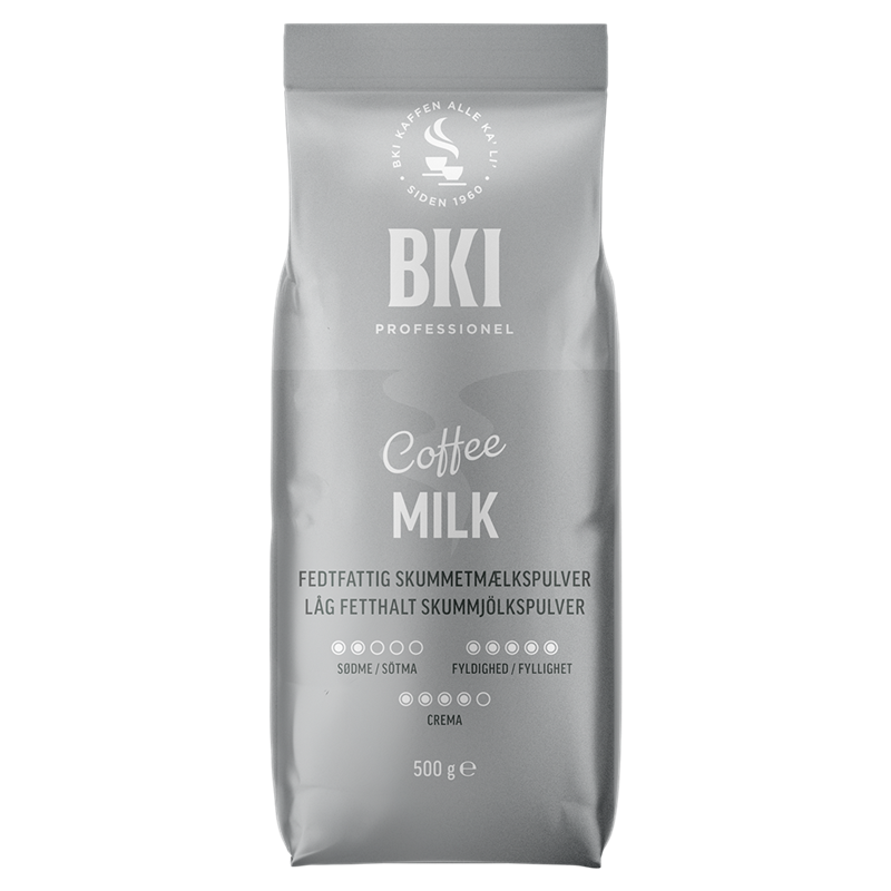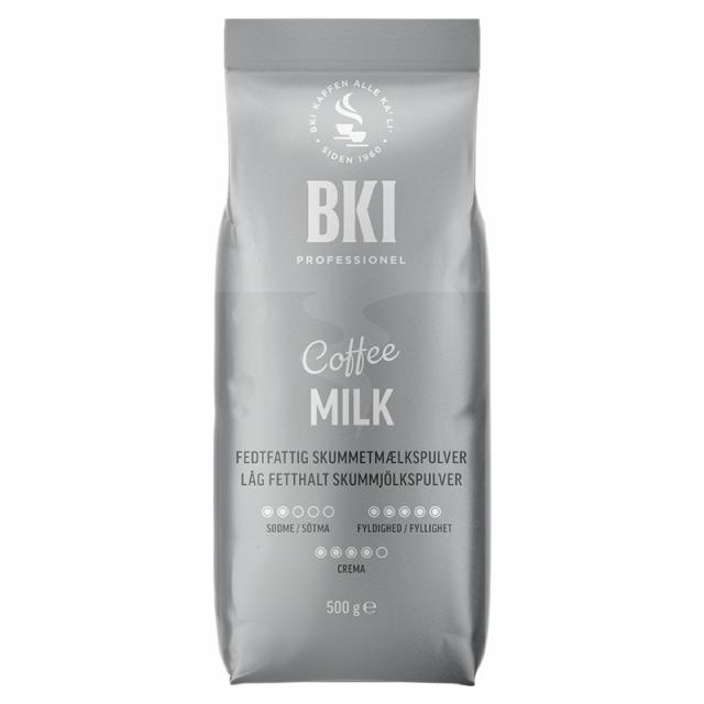 - BKI Coffee Milk er et fedtfattigt skummetmælkspulver, der er perfekt til en cappuccino,en café latte eller en café au lait. Giver en god fylde og en rigtig god smag af mælk.