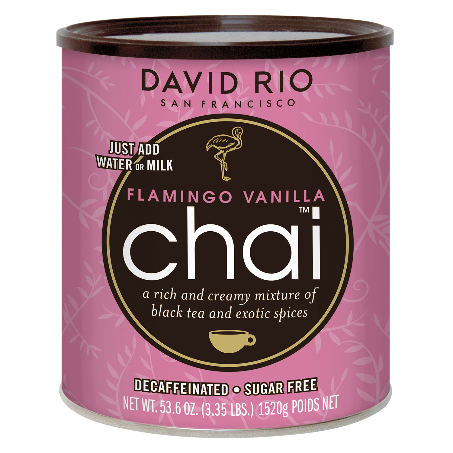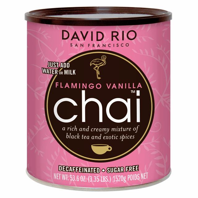 - Flamingo Vanilla er en både koffeinfri og sukkerfri chai. Det er en fyldig og cremet blanding af koffeinfri sort te og skønne krydderier som kanel, kardemomme og vanilje. Blandingen er sødet med Splenda. Tilberedes med varmt vand eller mælk.