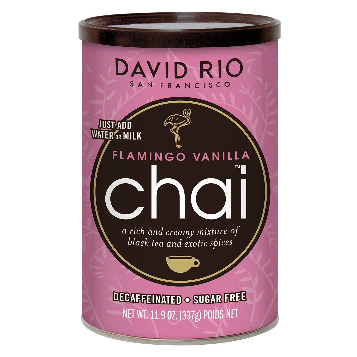 - Flamingo Vanilla er en både koffeinfri og sukkerfri chai. Det er en fyldig og cremet blanding af koffeinfri sort te og skønne krydderier som kanel, kardemomme og vanilje. Blandingen er sødet med Splenda. Tilberedes med varmt vand eller mælk.