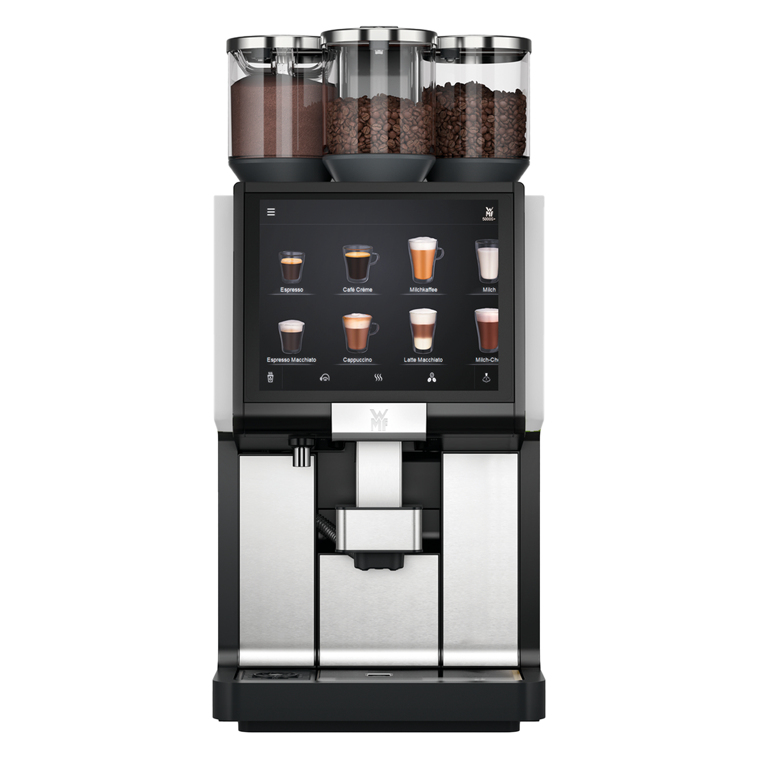 - WMF 5000S+ er premium maskinen, der leverer hastighed til perfektion. Med et stort udvalg af drikke leverer den hurtigt og uden at gå på kompromis med kvaliteten og baristaoplevelsen. Den har en anbefalet kapacitet på minimum 250 kopper om dagen. 5000S+ er kaffemaskinen, der dækker den store efterspørgelse. Med to bønnebeholdere til hele- og espressobønner samt kakao er udvalget uendeligt, ligesom maskinen tilbyder kaffespecialiteter med frisk mælk. Med brug af den smarte og brugervenlige 10" touchskærm kan enhver vælge lækre kaffe- og chokoladespecialiteter. WMF 5000S+ er støjsvag, og de unikke kværne sikrer en fast høj baristakvalitet og en perfekt kop kaffe hver gang. Med den patenterede SteamJet kan kop eller glas forvarmes, inden den ønskede kaffedrik brygges. Den daglige rengøringsproces af maskinen er hurtig og nem ved brug af den unikke rengøringsfunktion. 5000S+ fås i flere udgaver med en eller to kværne til hele- og espressobønner, frisk mælk eller mælketopping/kakao og separat hane til tevand. Maskinen er en højtydende 400 V model, hvor der er mulighed for samtidig brygning af kaffe og tevand. Maskinen findes med forskellige mælkesystemer: Basic Milk, Easy Milk eller Dynamic Milk. Mulighed for køleskab under bord og mulighed for valg af to typer mælk. Touchskræmen kan vise billeder og videoer efter ønske. WMF 5000S+ kan leveres med individuelle ønsker som f.eks. Dynamic Coffee Assist, Dynamic Milk Assist, Fresh Filtered Coffee. Som standard har den WMF connect.