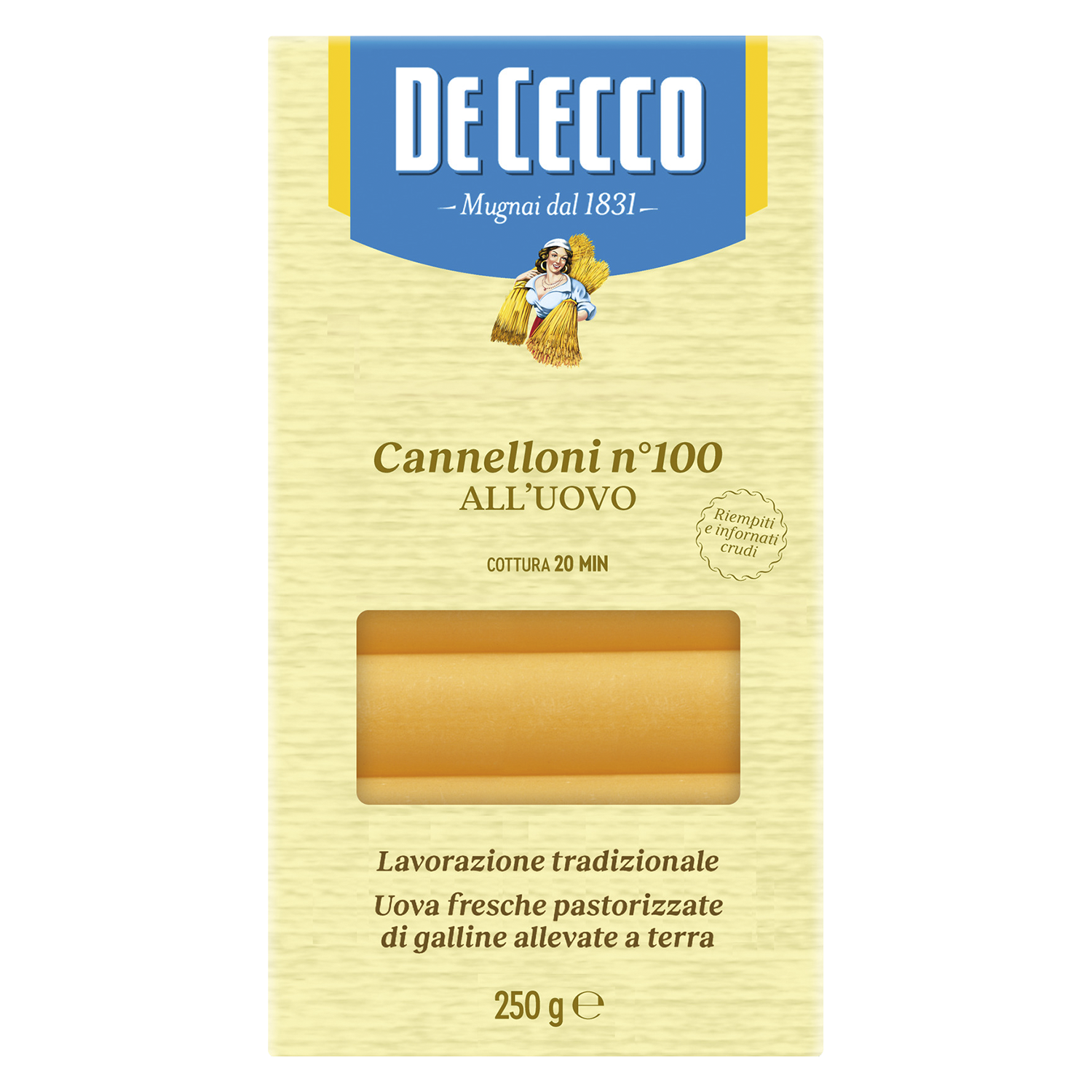 - Cannelloni tilhører familien af store, glatte pasta, skåret lige over. De har betydelige dimensioner: en diameter på cirka 23 mm, en længde på 100 mm og en tykkelse mellem 0,9 and 1 mm. Ideelle til at fylde med velsmagende fars, kød, grøntsager og ricotta.