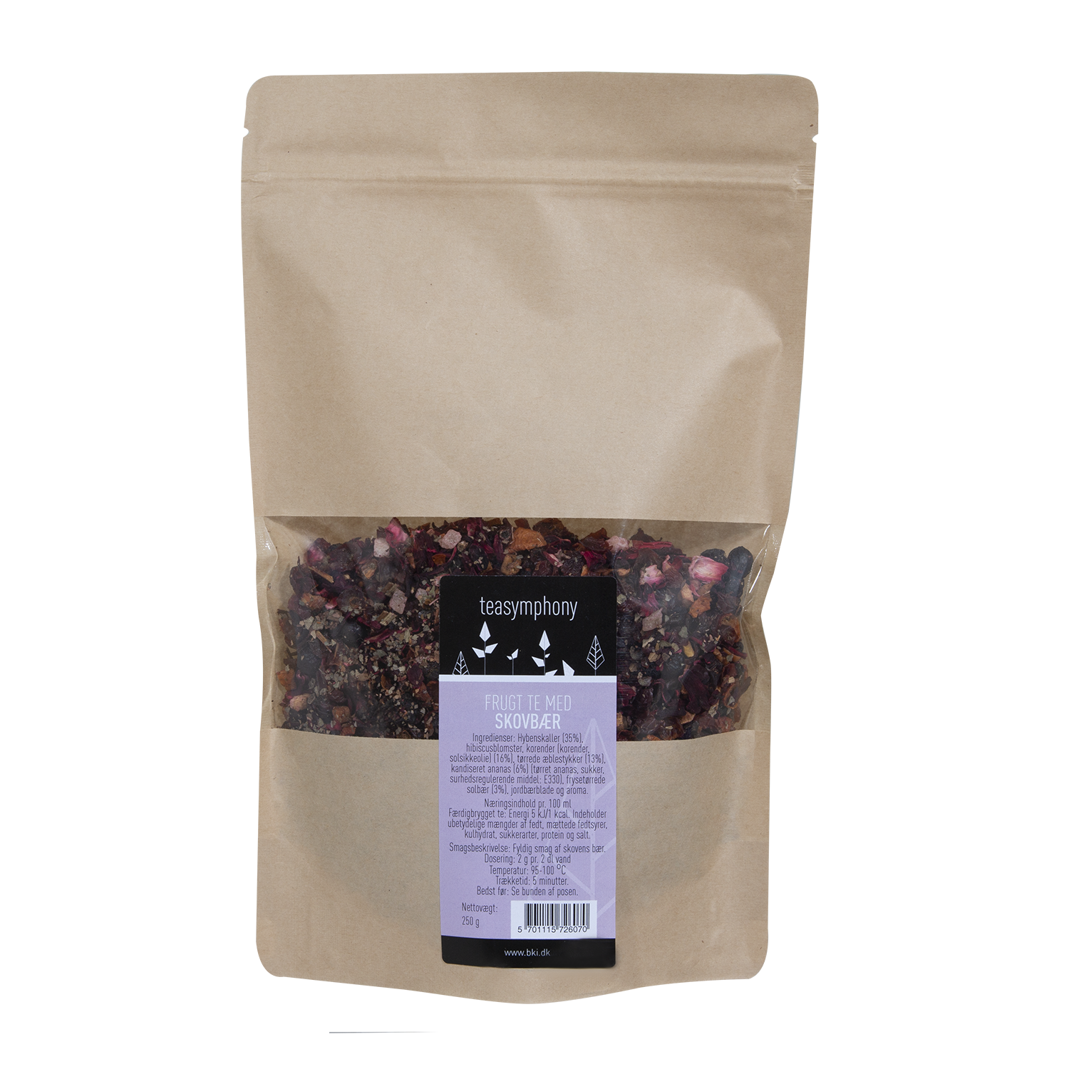 Hybenskaller (35%), hibiscusblomster, korender (korender, solsikkeolie) (16%), tørrede æblestykker (13%), kandiseret ananas (6%) (tørret ananas, sukker, surhedsregulerende middel: E330), frysetørrede solbær (3%), jordbærblade og aroma.