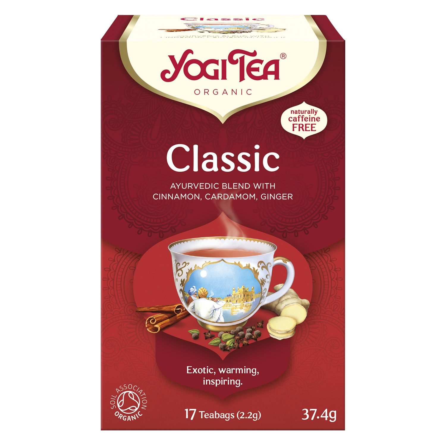 Yogi Tea® Classic Chai er den te, som Yogi Bhajan oprindeligt serverede til sine yoga elever. Denne unikke blanding er en kombination af de traditionelle ayurvediske krydderier kanel, kardemomme, ingefær, nelliker og sort peber. Lækker, krydret og vidunderlig. Essensen af denne te er: Behagelig og rig.