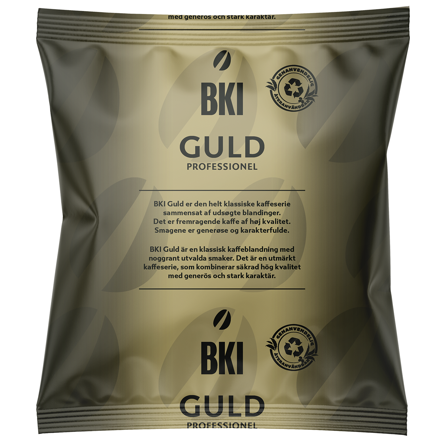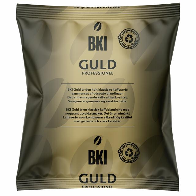 - BKI Guld er den klassiske kaffeserie, som består af nogle af de mest solgte kaffevarianter på det danske professionelle marked. Det, der kendetegner BKI Guld kaffen, er, at den er mellem- eller mørkristet, mild og rund. Serien er sammensat af kaffe fra blandt andet Sydamerika og Indonesien. Resultatet er kaffe med en rund og fyldig smag med en behagelig let syrlig eftersmag. BKI Guld-serien er særdeles velegnet til kandebryg og automater. Denne kaffe bliver leveret i Danmarks første genanvendelige kaffepose i plast, som efter brug kan blive til nye plastprodukter, når den sorteres som "blød plast".