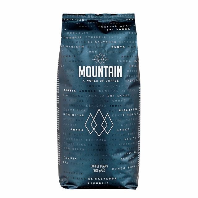 Mountain kaffe er en serie af hele bønner. Vores varesortiment består af rene kaffer, blandingskaffer og smagskaffer. Vi har en kaffe fra - næsten - alle kaffedyrkende områder i verden. Bønner leveres i 1 kg vakuumposer med ventil. Denne ventil betyder, at de nyristede bønner kan pakkes kort tid efter ristning, og at den fulde smag og aroma dermed bibeholdes. Ventilposen giver bønnerne en holdbarhed på et år. Denne kaffe bliver leveret i en kaffepose af plast, udviklet til at kunne genanvendes, når den sorteres som "blød plast".
