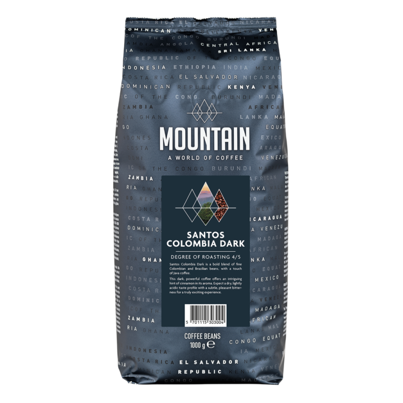 Santos Colombia Mørk er en fyrig blanding af delikate kaffesorter fra Colombia og Brasilien med et strejf af krydret Javakaffe. En mørk og kraftfuld kaffe. En spændende kaffe med en snert af kanel i duften. En let tør smagsoplevelse med en let syrlighed og et strejf af bitterhed.